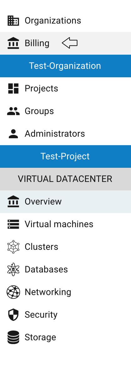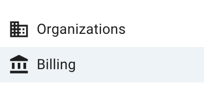 The Billing section displays only Organizations where the User has the owner or billing administrator role. More detailed information about User roles within an Organization can be found here - Users within Organization.