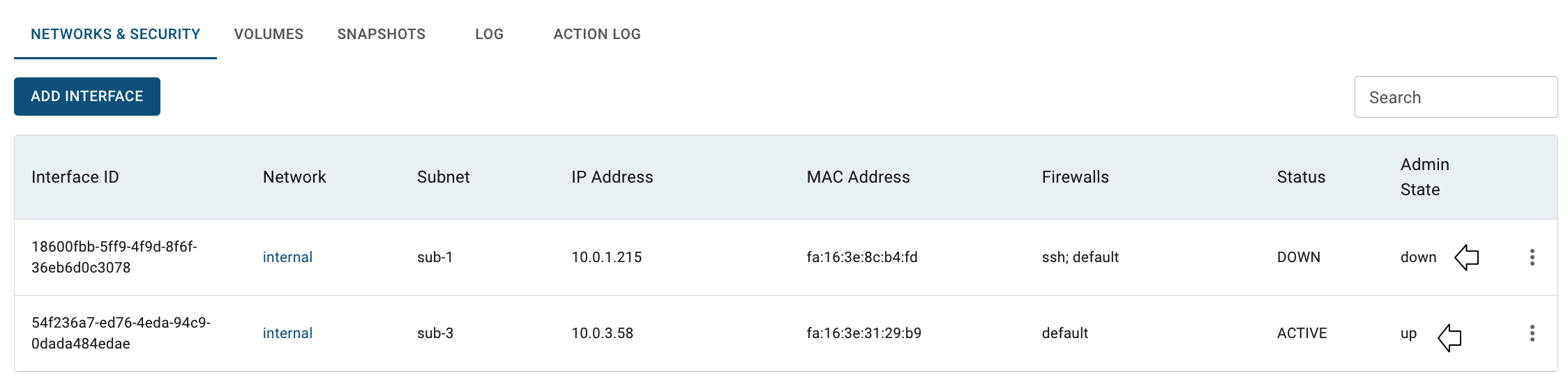 💡 Activating or deactivating an Interface allows to temporarily enable or disable network connectivity for a Virtual Machine without deleting the Interface itself.