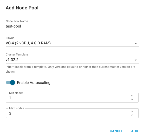 When creating new node pools using the ADD NODE POOL button, administrators can: