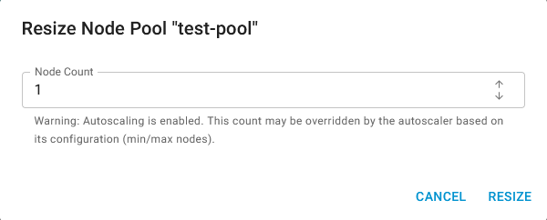 - identify the Node Pool, that you want to resize, on the Cluster details page;