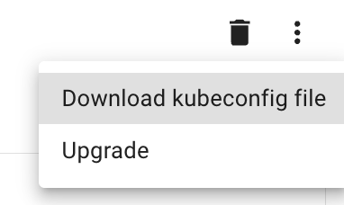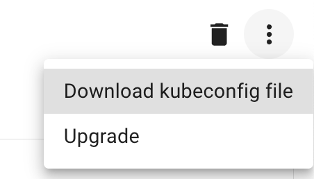 - click on the Actions icon and select the Download kubeconfig file in the list of available options.